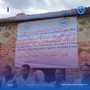 وخلال مراسم التدشينفي قرية ولا، رصدت عدسة “سودان سوا سوا” لحظة فارقة أعادت الحياة والأمل إلى الأسر المنكوبة، حيث بدأت قوافل المساعدات بالوصول محملة بمواد الإيواء الأساسية والمواد الغذائية الضرورية.