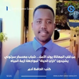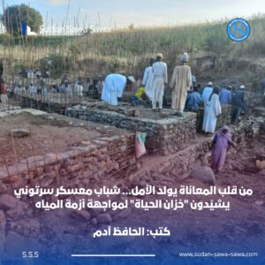وسط هذه الظروف، أطلق قروب شباب معسكر سرتوني للنازحين مبادرة مجتمعية رائدة تهدف إلى إنهاء معاناة استمرت أكثر من أربع سنوات، من خلال صيانة آبار “كوبي” وبناء خزان مياه جديد لتوفير الإمداد المائي لآلاف الأسر داخل المعسكر.